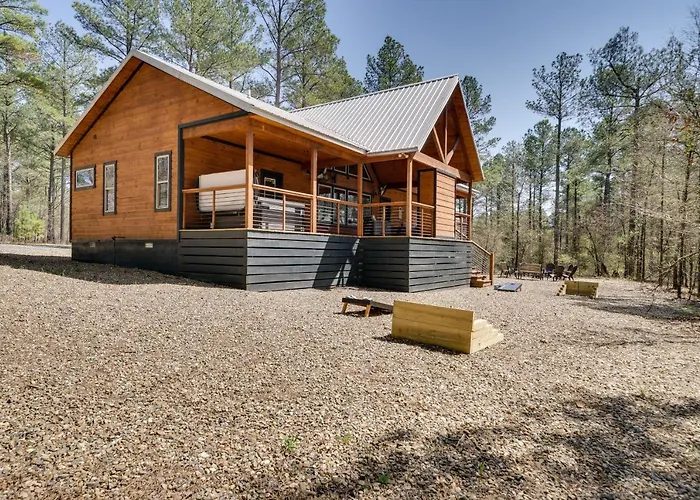This accommodation is equipped with a microwave oven, a refrigerator, and kitchenware for self-catering in an outdoor dining area. The nearest Texarkana Regional -Webb Field airport is 145 km away from Family-Friendly Broken Bow Cabin Rental With Hot Tub.
